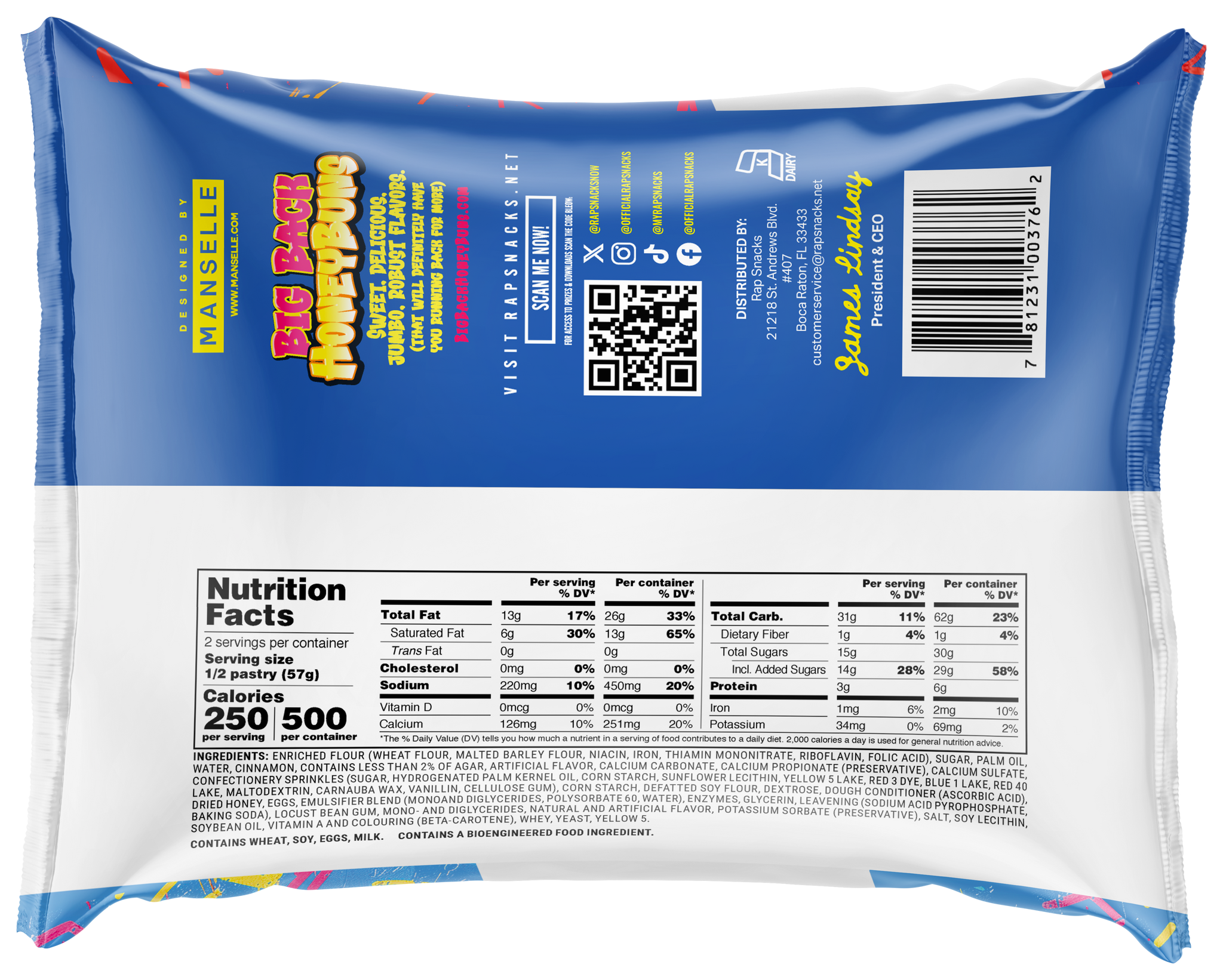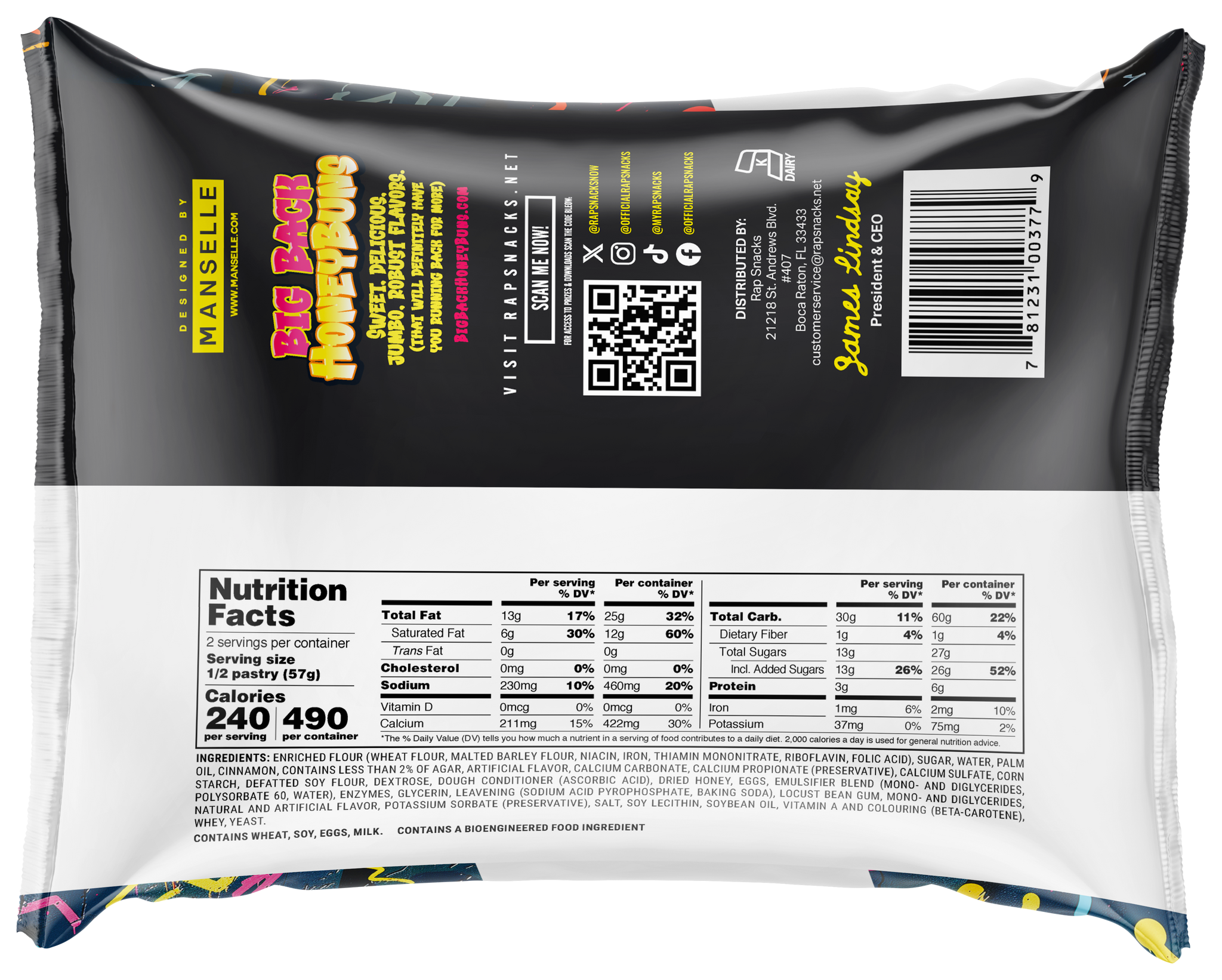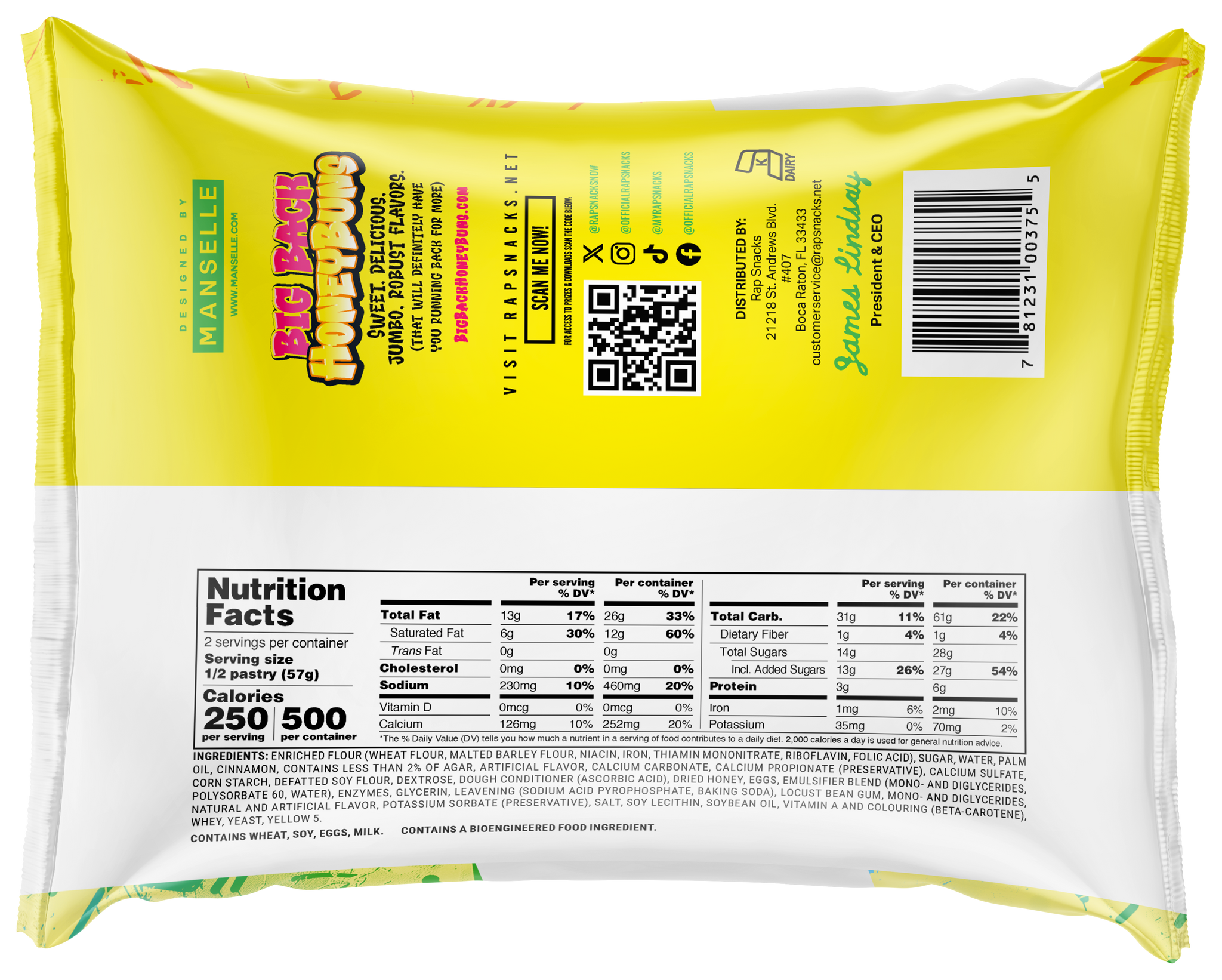 Enjoy our signature line-up of Rap Snacks Big Back Honey Buns in one convenient pack! Each box will contain 12 Big Back Honey Buns*, including: